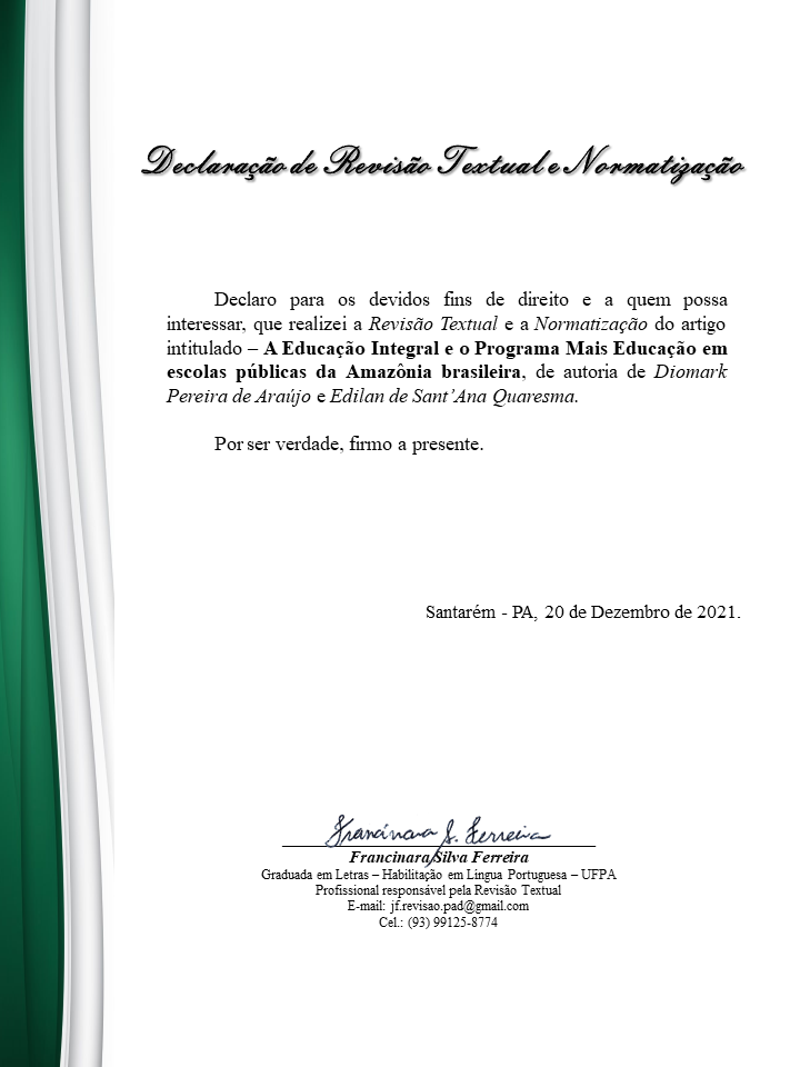 Keywords: whole education; full-time education; programa mais educação; Amazon.